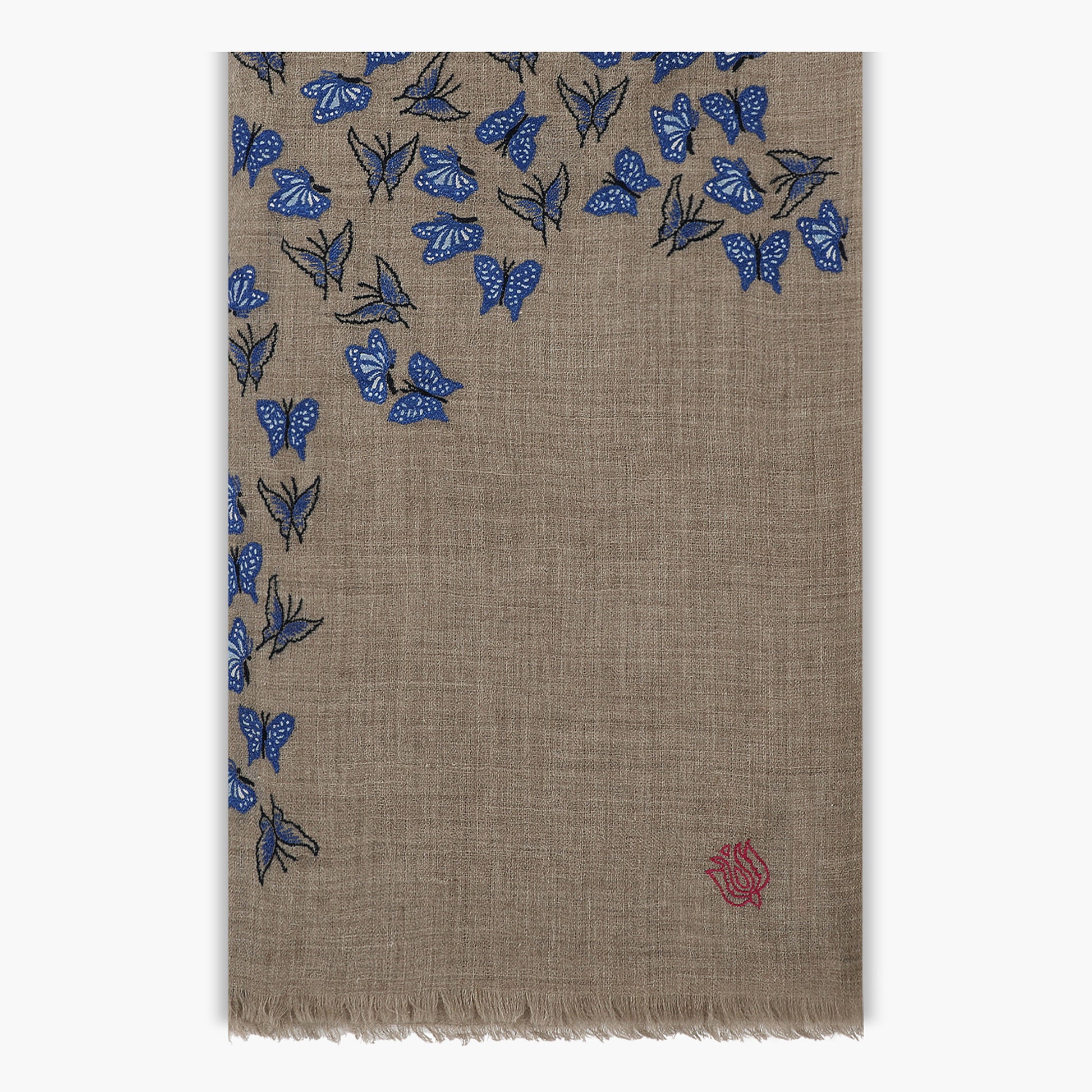 Butterfly to Butterfly Embroidered Natural & Blue Shawl