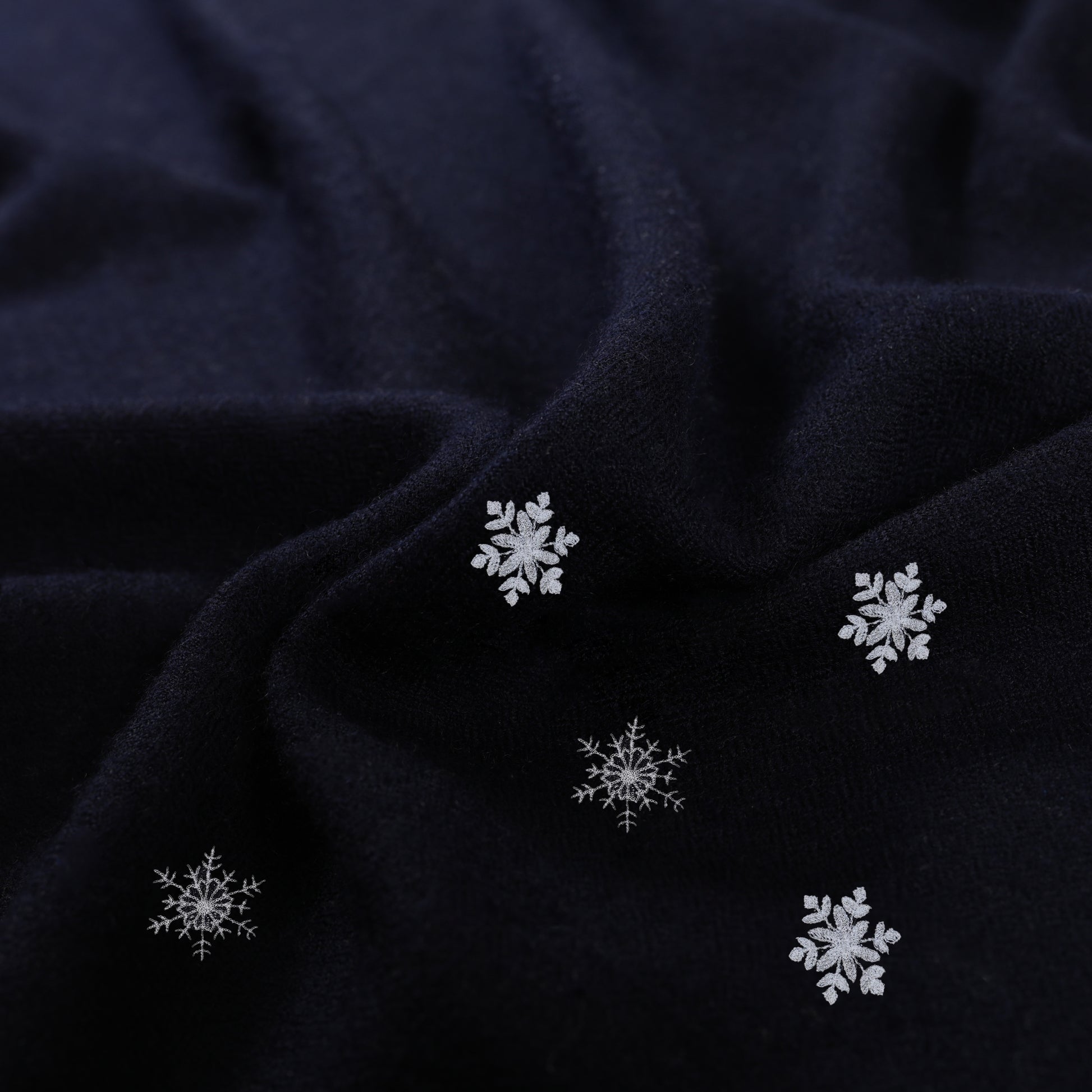 Minimal Embroidery Snow Flakes Navy Stole