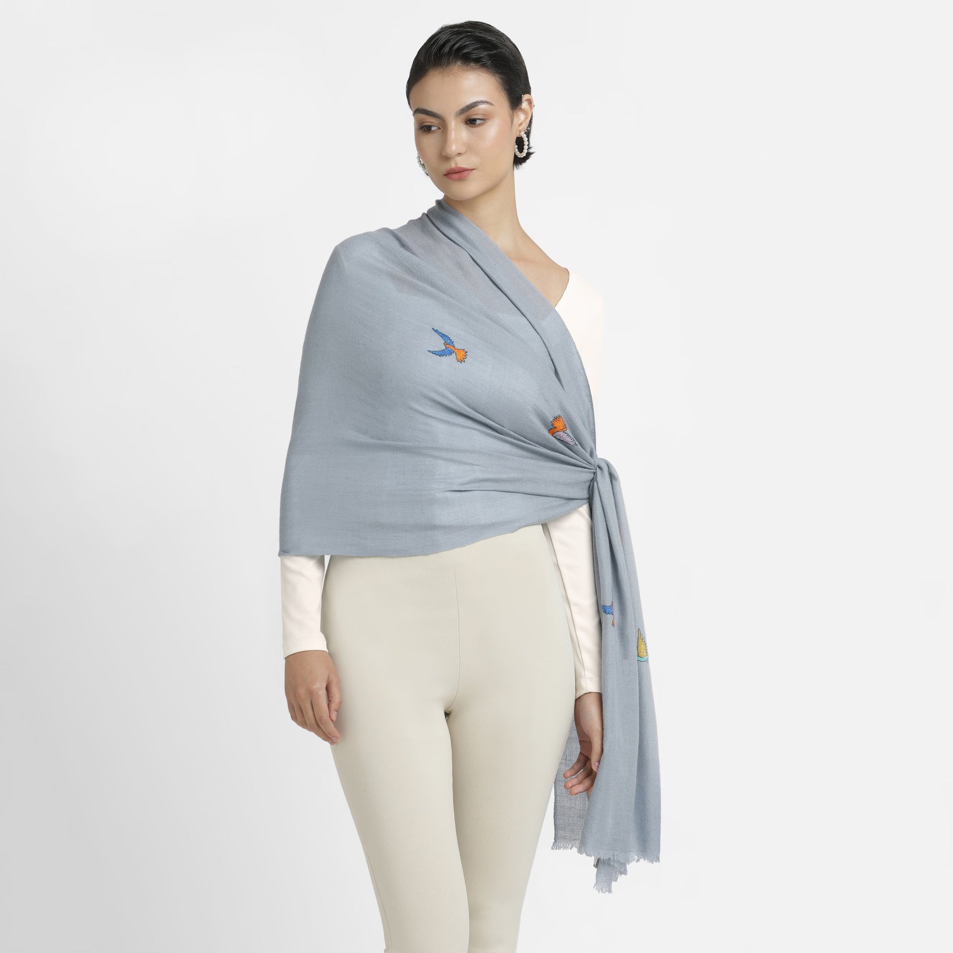 Minimal Embroidery Freedom Blue Dove Stole