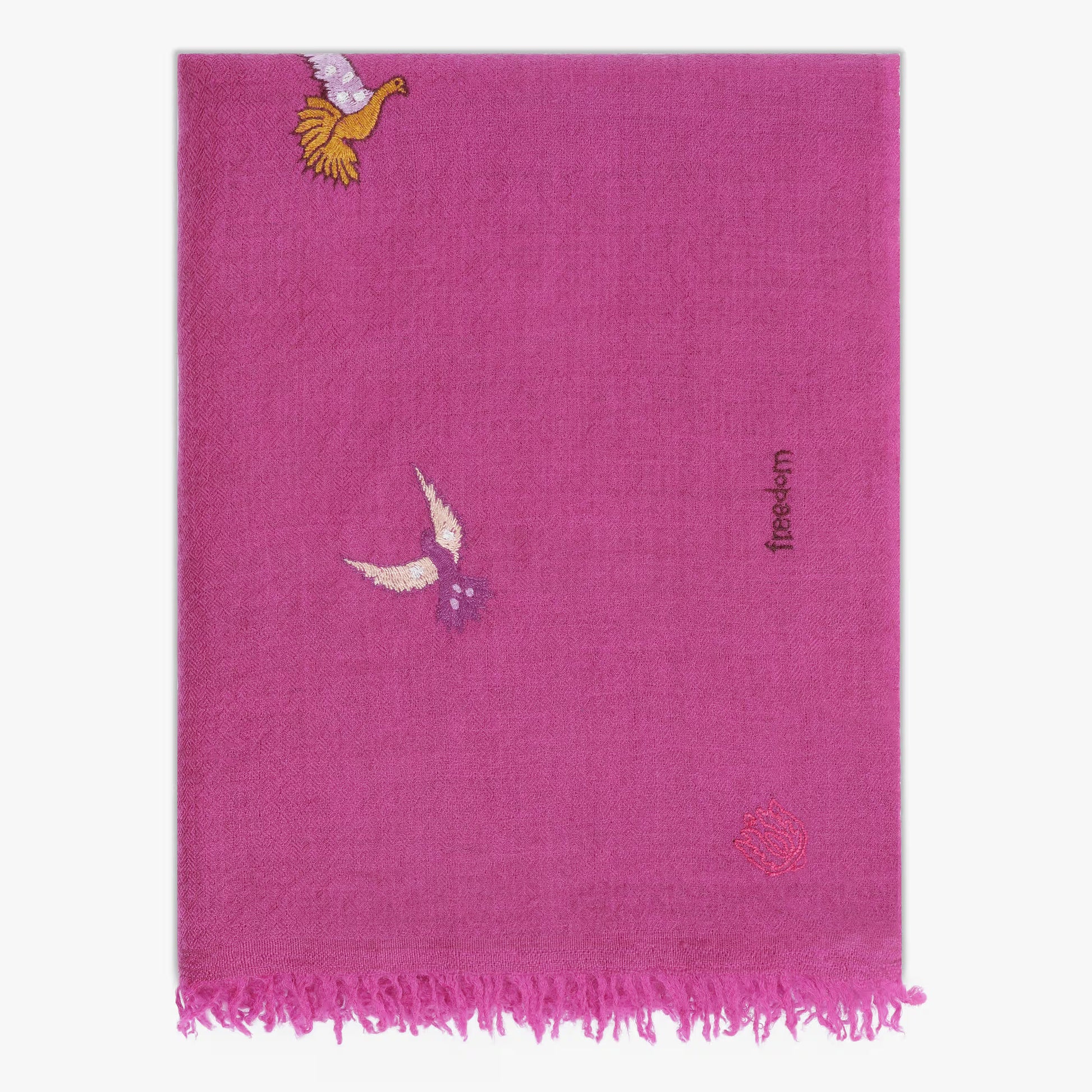 Minimal Embroidery Freedom Fuchsia Dove Stole